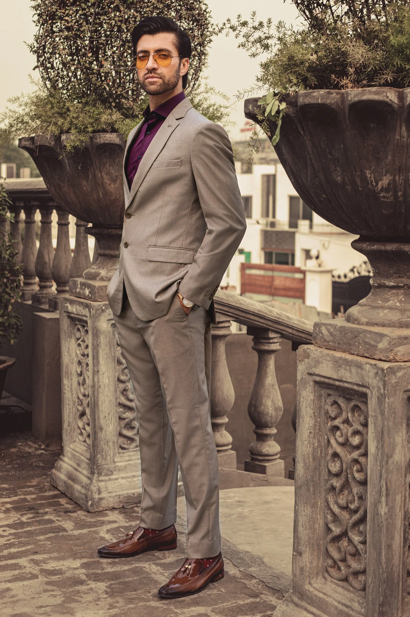 A fawn color premium 2-piece suit is available made of premium imported suiting fabric with high-quality stitching. This outfit will give you the classy and elegant style that you deserve.